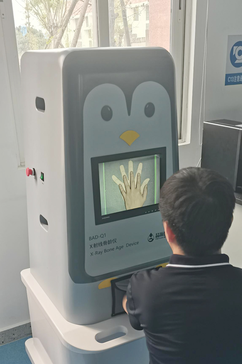 品源醫療X射線骨齡儀的便捷操作體驗也為日常使用帶來便利。配備的手部限位圖、監控屏監控擺位以及軟件視頻監控功能組成的三方位定位系統,能幫助操作人員快速、準確地定位檢測區域,減少重復拍攝,提升檢測效率。雙監控顯示窗口的設計,使操作人員與被檢者可同步觀察擺位情況,增強檢測過程的透明度與互動性。此外,BAD-Q1采用企鵝造型的卡通化外觀設計,色彩柔和,兒科專用參數設置避免過度曝光,充分考慮受檢人群心理與生理特點,緩解在檢測時的緊張情緒,保障檢測的安全性與舒適性。