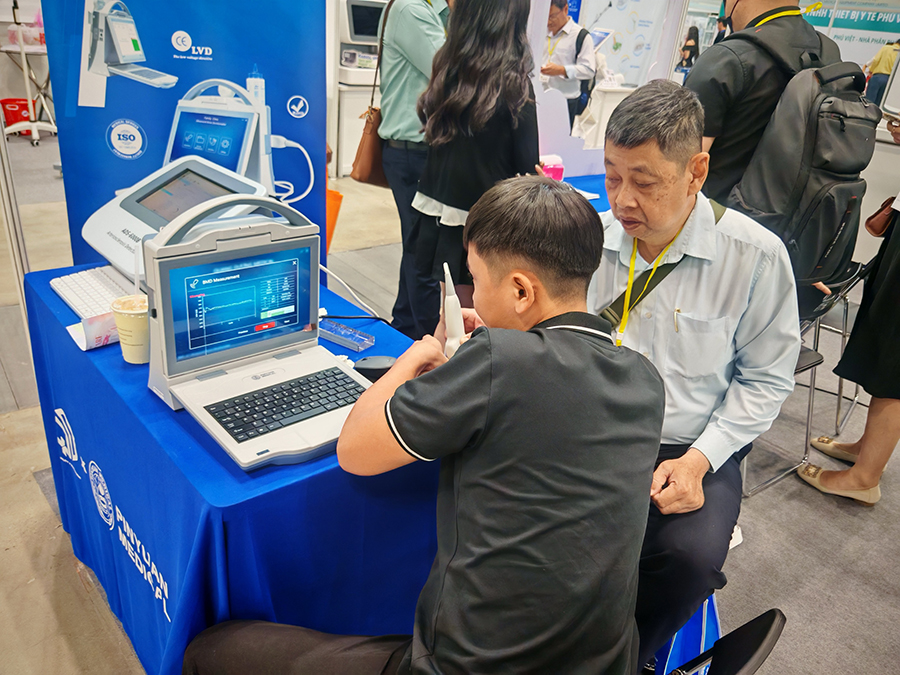 展會期間,品源醫療展臺憑借清晰的功能分區與沉浸式互動體驗,成為展會人氣最旺的展臺之一。展臺以 “精準檢測?守護健康” 為主題,精心劃分產品體驗區、技術交流區與合作洽談區,通過 “現場演示 + 案例分享 + 一對一咨詢” 的立體化互動模式,與越南醫療機構、經銷商、行業專家展開多維度深度溝通,為后續中越醫療合作奠定堅實基礎。