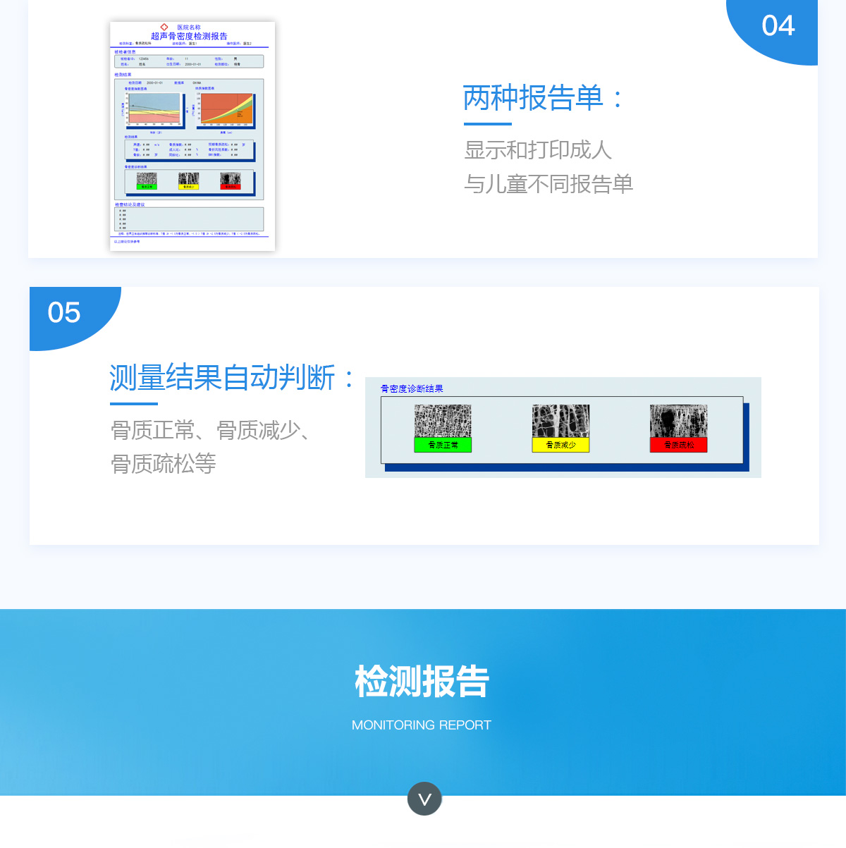 ■ 軟件優(yōu)勢(shì)::BMD-A系列超聲骨密度檢測(cè)儀一臺(tái)儀器裝配有智能分析系統(tǒng),經(jīng)濟(jì)實(shí)用。可測(cè)量0-100歲人群。